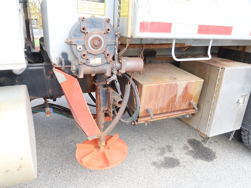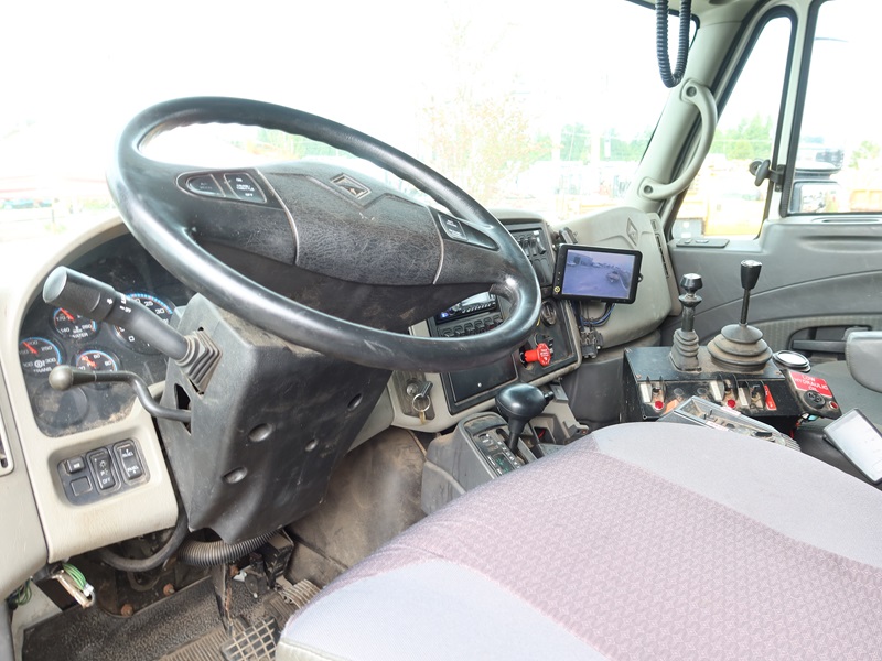 DUMP TRUCK, 300 HP MAXXFORCE GDT300, AUTO, TENCO 10' STEEL BOX/SPREADER, SIDE TILT, 10' SNOW PLOW, TARP SYSTEM, AIR SUSPENSION, 165" W/B, 16,000 LB FRONT, 23,000 LB REARS, A/B, BATCH GATES