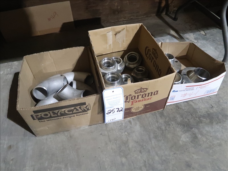 LOT, SS COMPRESSION COUPLERS, (6) 2" COUPLERS, (6) 1-1/2" COUPLERS, (8) 90-DEGREE SWEEPS, (3) 4-BOLT HOLE HUBS (UNUSED)
