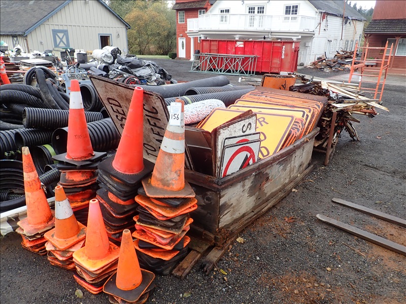LOT, ASSORTED ROAD SIGNS & BASES IN THIS SECTION