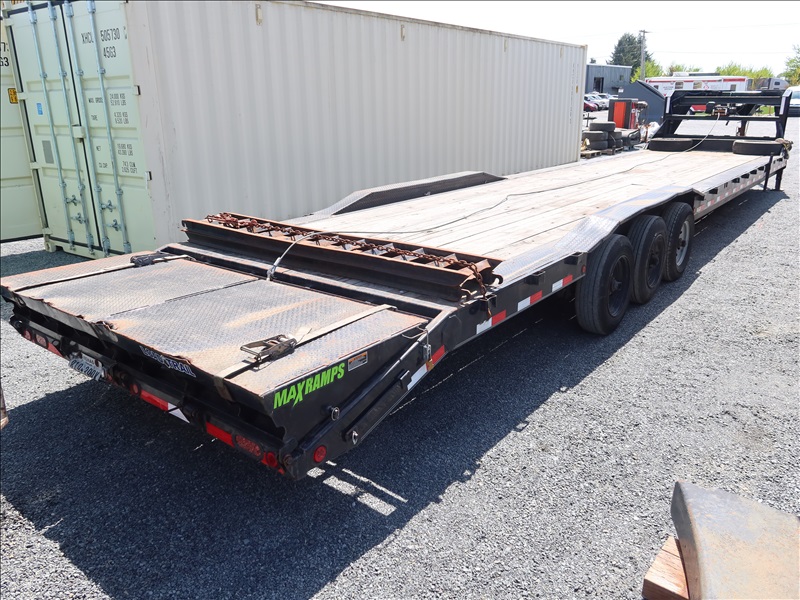 TRI/A, 40' X 8'6", 12,000 LB GVWR GOOSENECK FLATBED TRAILER, SPRING BEAM SUSPENSION, FOLD DOWN RAMPS, HOOK RAMPS, 12,000 LB WINCH, ELECT BRAKES, 235/75R17.5
