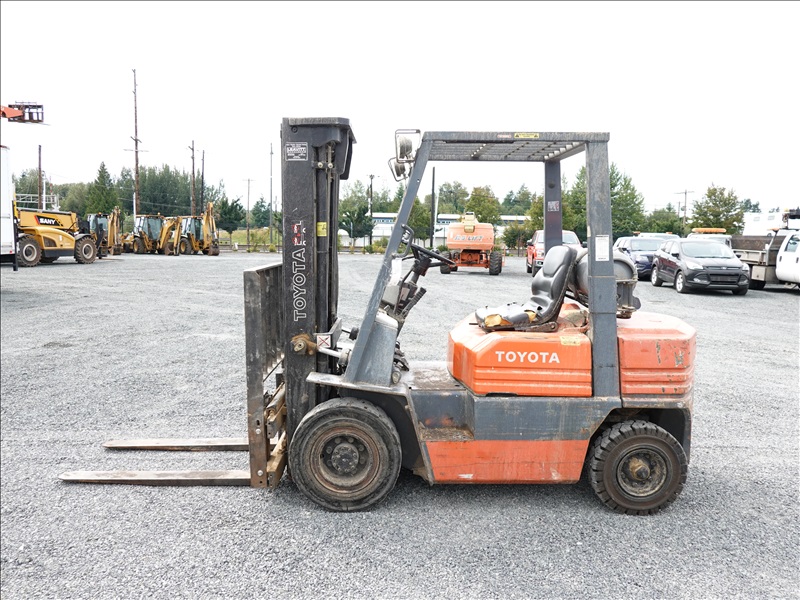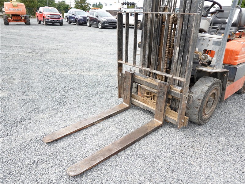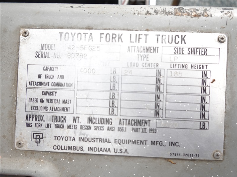 4,000 LB SOLID TIRE FORKLIFT, 185" MAST HEIGHT, 2-STAGE MAST, SIDE SHIFT, 4-Y LPG ENGINE