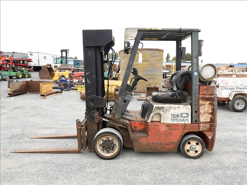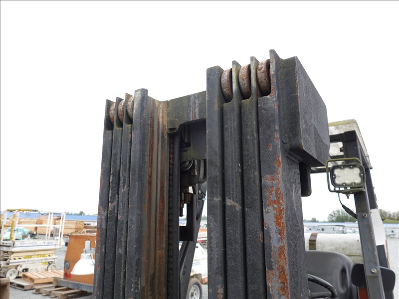 SOLID TIRE FORKLIFT, 3-STAGE MAST, SIDESHIFT, LPG (SERIAL NUMBER DATA PLATE DAMAGED, S/N NOT LEGIBLE)