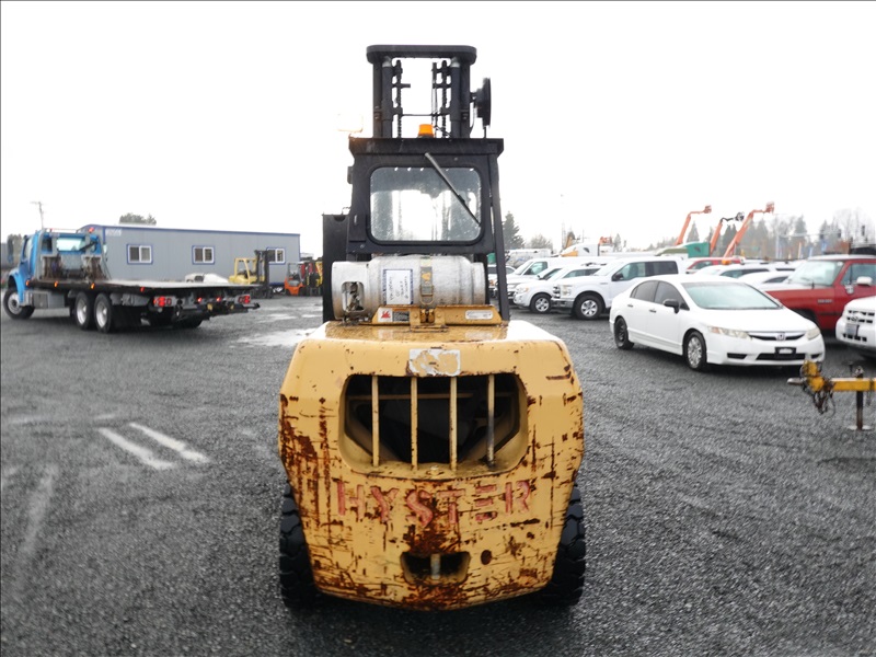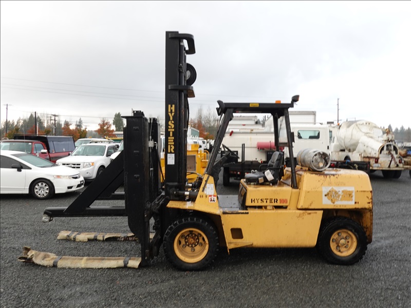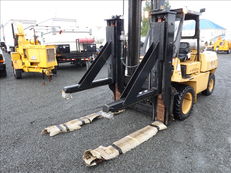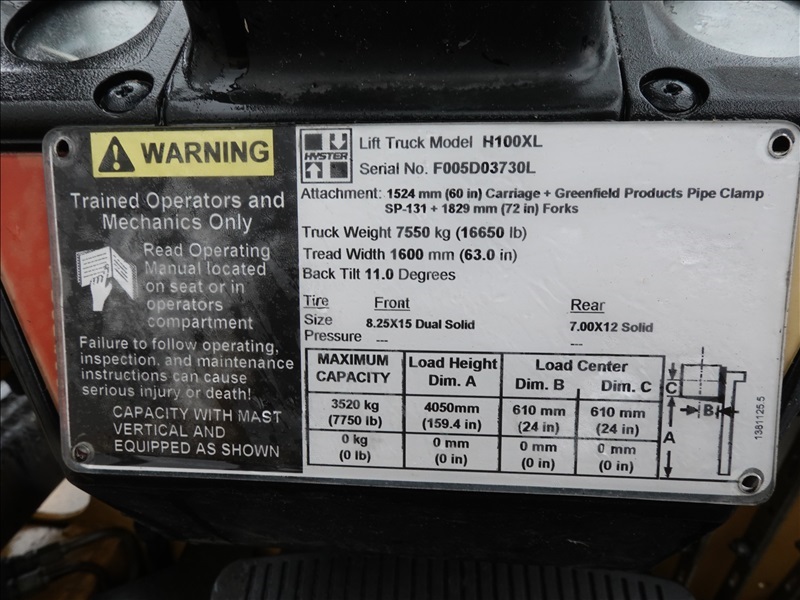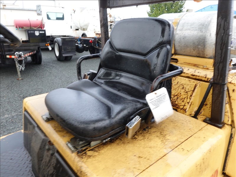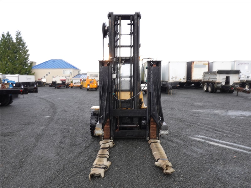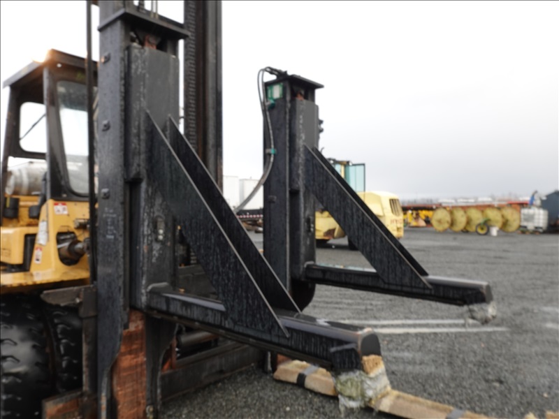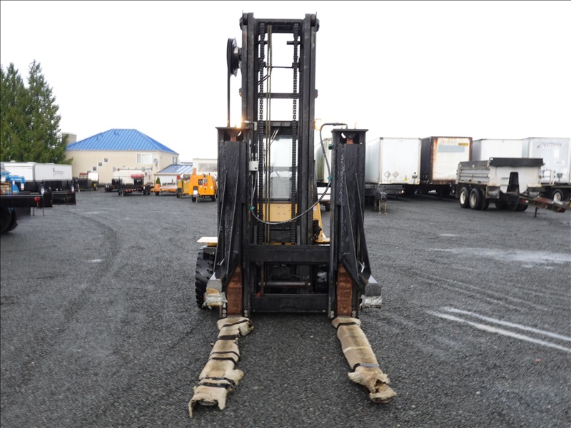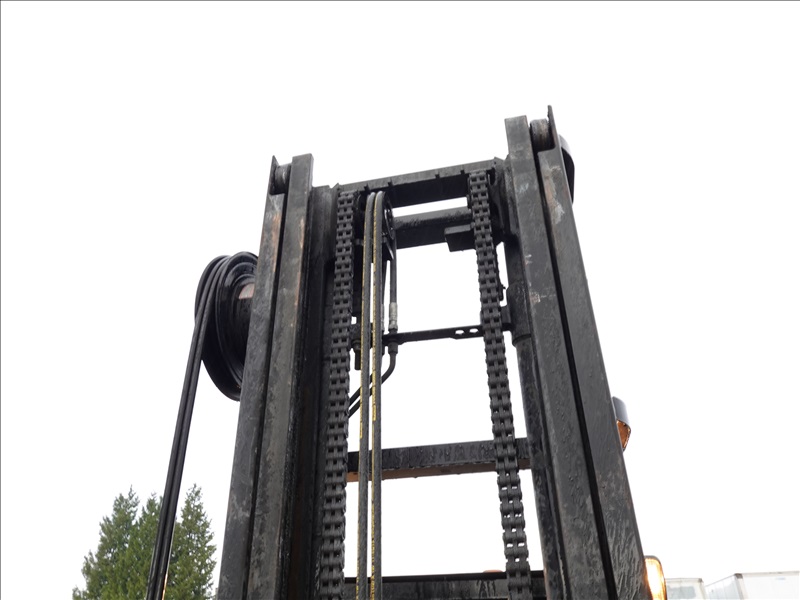 7,750 LB DUAL PNEUMATIC FORKLIFT, 159" FORK HEIGHT, 2-STAGE MAST, SIDE SHIFT, GREENFIELD PIPE CLAMP, 6 CYL LPG (CONSIGNOR DISCLOSURE: CONTROL FUNCTION ELECTRICAL ISSUES, NO PROPANE TANK)