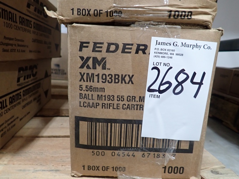 CASE OF (1,000) ROUNDS OF FEDERAL XM193BKX 5.56 BA...