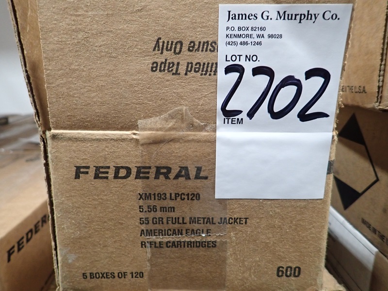 CASE OF (600) ROUNDS OF FEDERAL AMERICAN EAGLE XM 193 LPC 120 5.56 55 GR FMJ AMMO