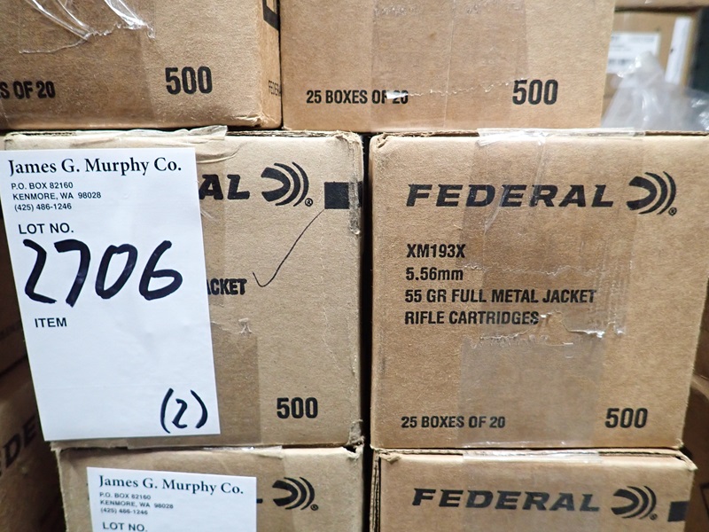 LOT, (2) CASES OF (500) ROUNDS EACH FEDERAL XM 193X 5.56 55 GR FMJ AMMO