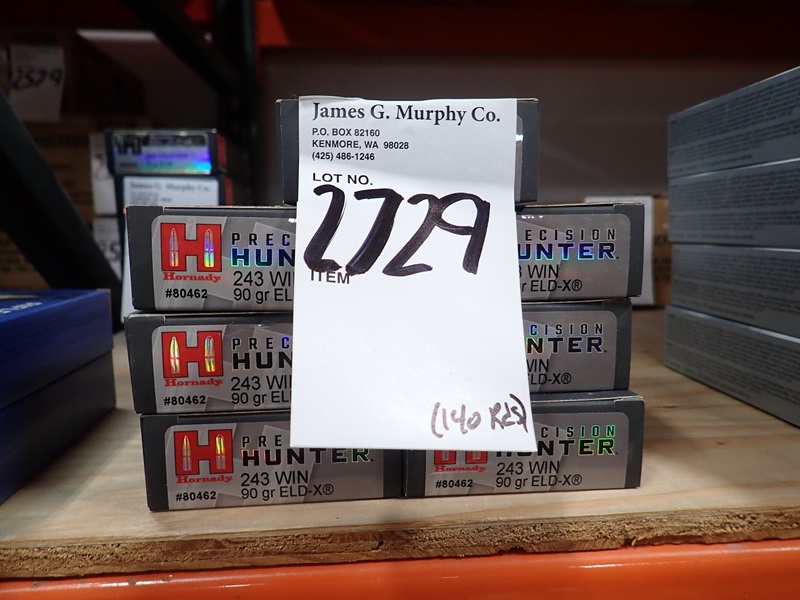 LOT, (140) ROUNDS OF HORNADY PRECISION HUNTER 243 WIN 90 GR ELD-X AMMO