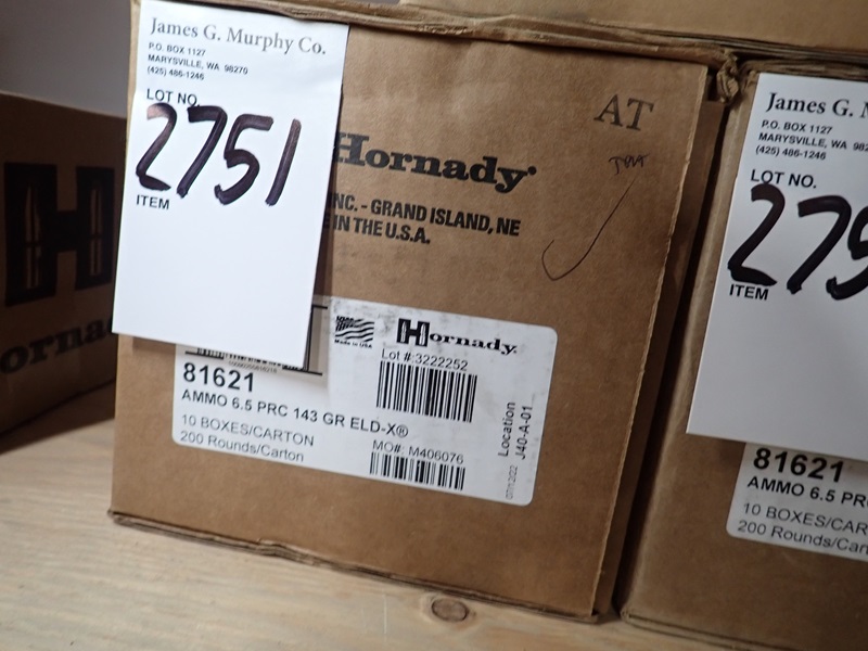 CASE OF (200) ROUNDS OF HORNADY 6.5 PRC 143 GR ELD...