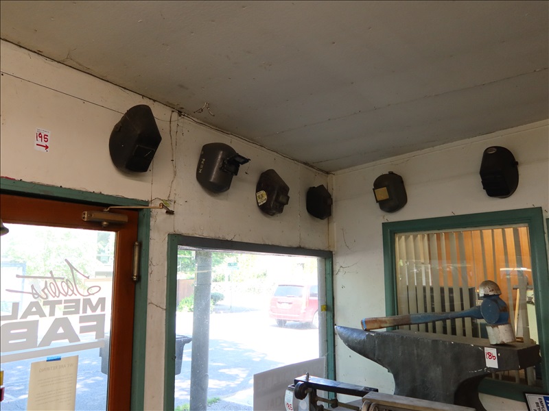 (6) WELDING HELMETS ON THIS WALL