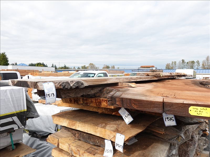 LOT, (1) 2" X 81" KILN DRIED SURFACED LIVE EDGE WALNUT SLAB (LARGE END 15", SMALL END 9"& (1) 2" X 181" 5-YEAR AIR DRIED LIVE EDGE REDWOOD SLAB (LARGE END 23", SMALL END 13", NO REMOVAL BEFORE WEDNESDAY, OCTOBER 16TH)