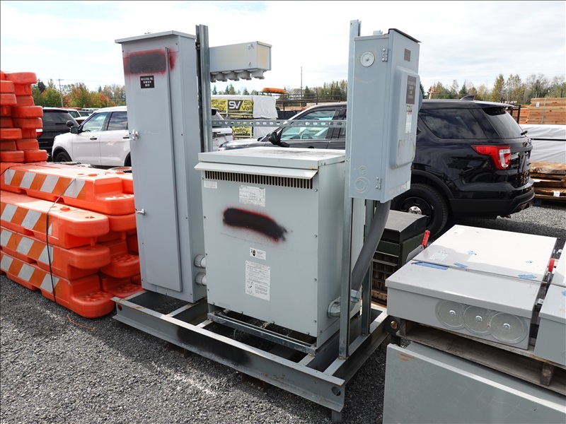 LOT, GE 9T83B3875 TRANSFORMER, 480V, 3 PHASE W/ELECTRICAL PANEL & SAFETY SWITCH