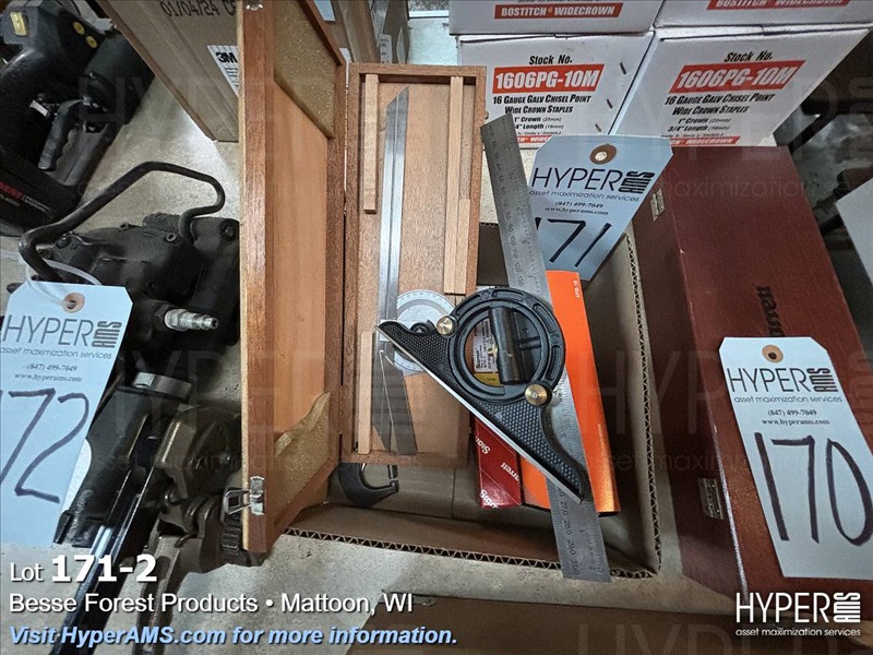 MICROMETERS, CALIPERS, COMPOUND SQUARE, BUBBLE LEVEL