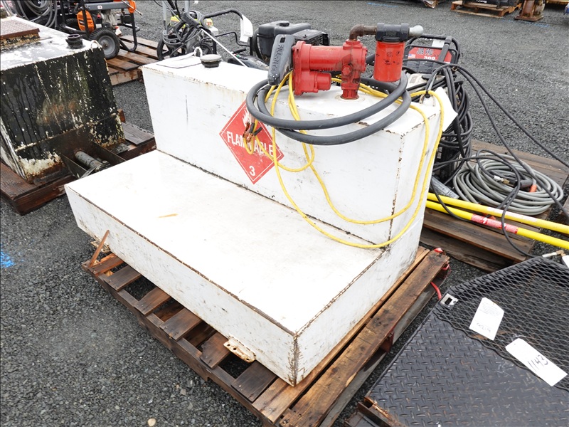 100-GALLON TRANSFER TANK W/FILL-RITE 12V PUMP, 54-1/2"L X 31"D X 26"H