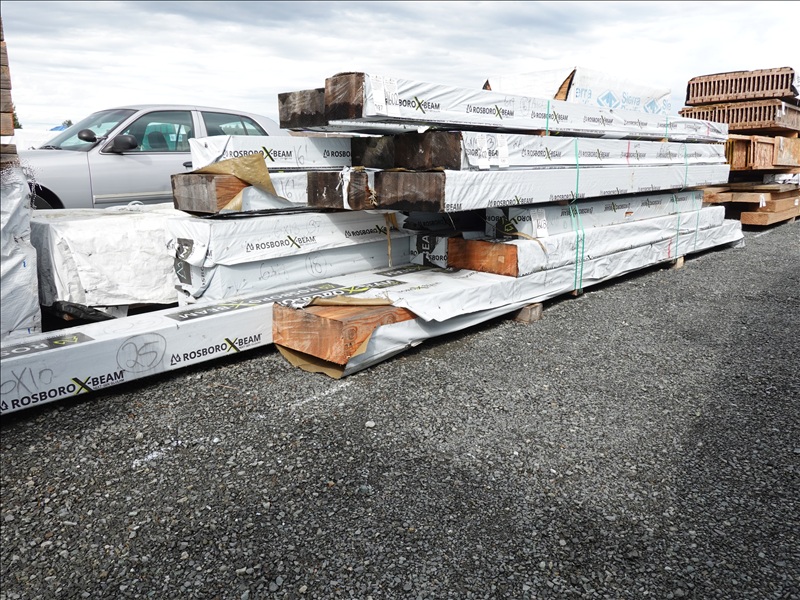 LOT, ASSORTED DIMENSION GLULAM BEAMS AT APPROX 6' - 25' LENGTHS (NO REMOVAL BEFORE WEDNESDAY, APRIL 23RD)