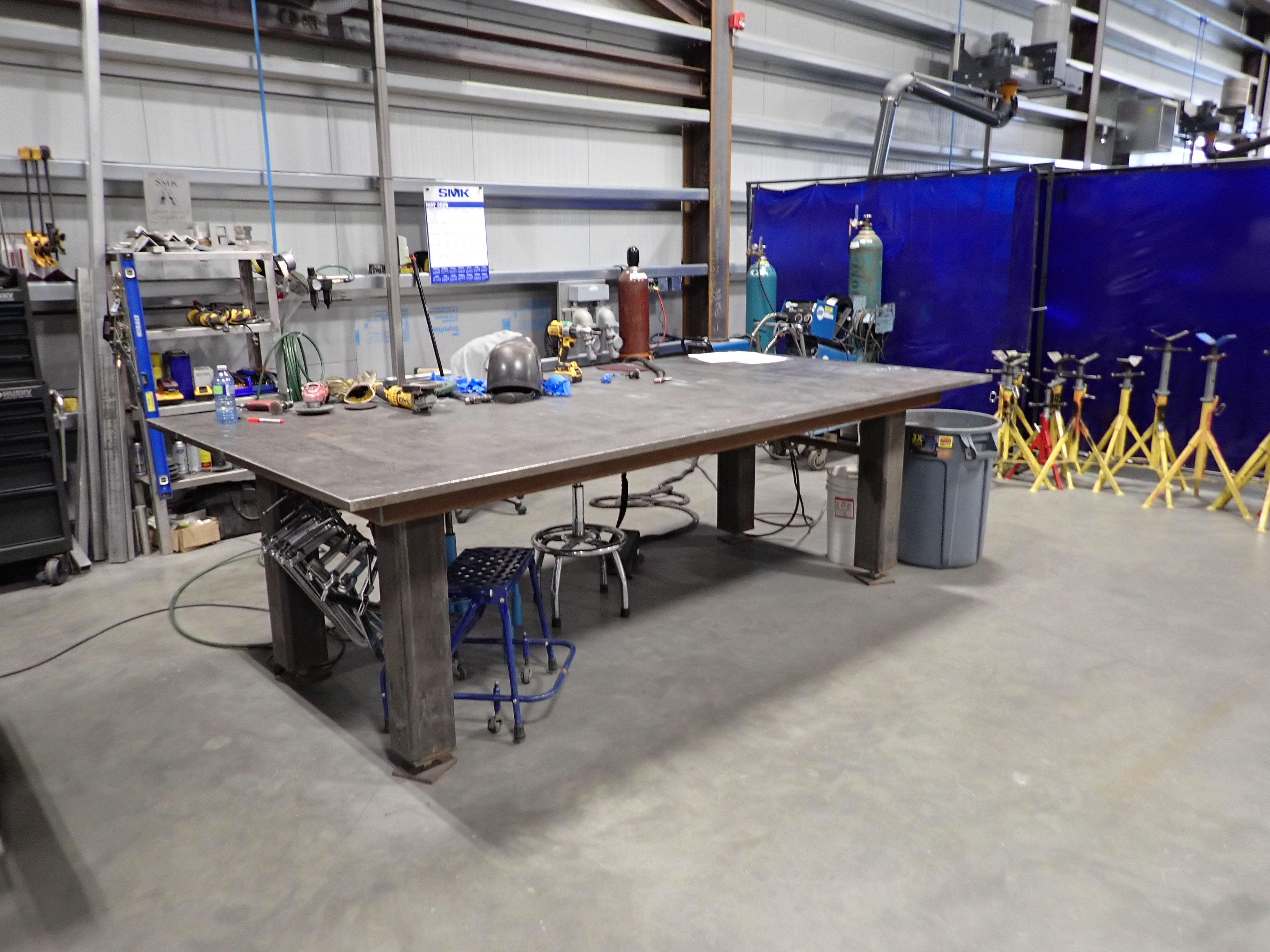 60"X120"X1" FAB TABLE, CLAMPS, TOOLBOX, GRINDERS, STANDS, WELD CURTAINS, CARTS & MISC.