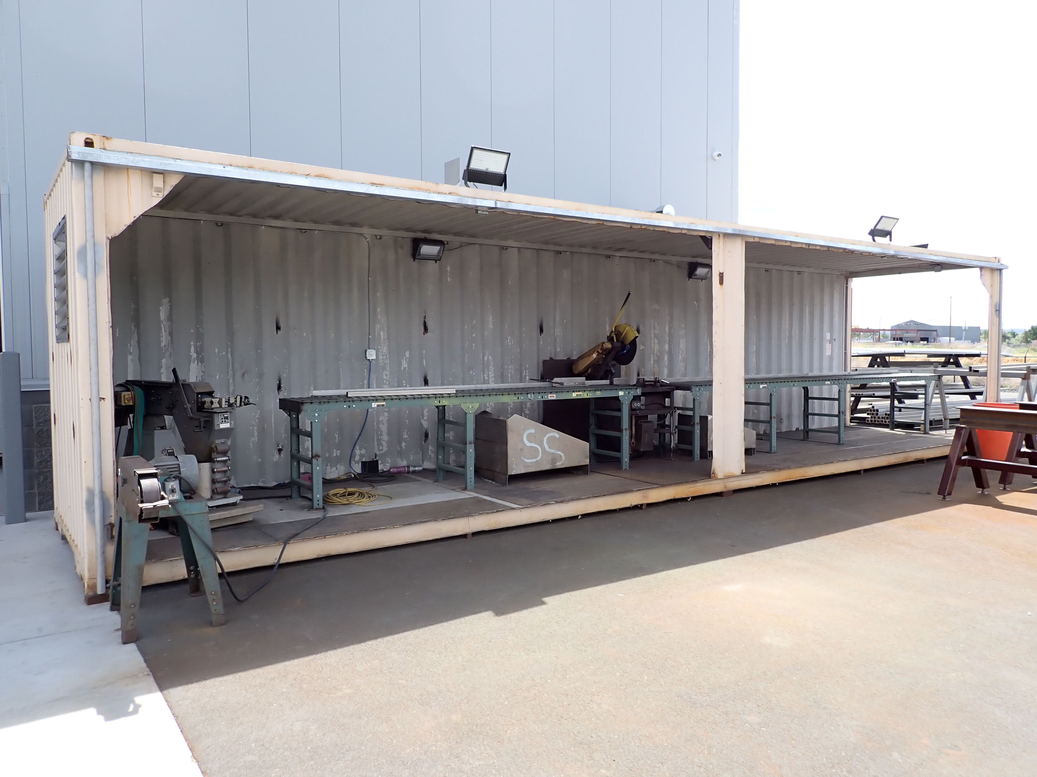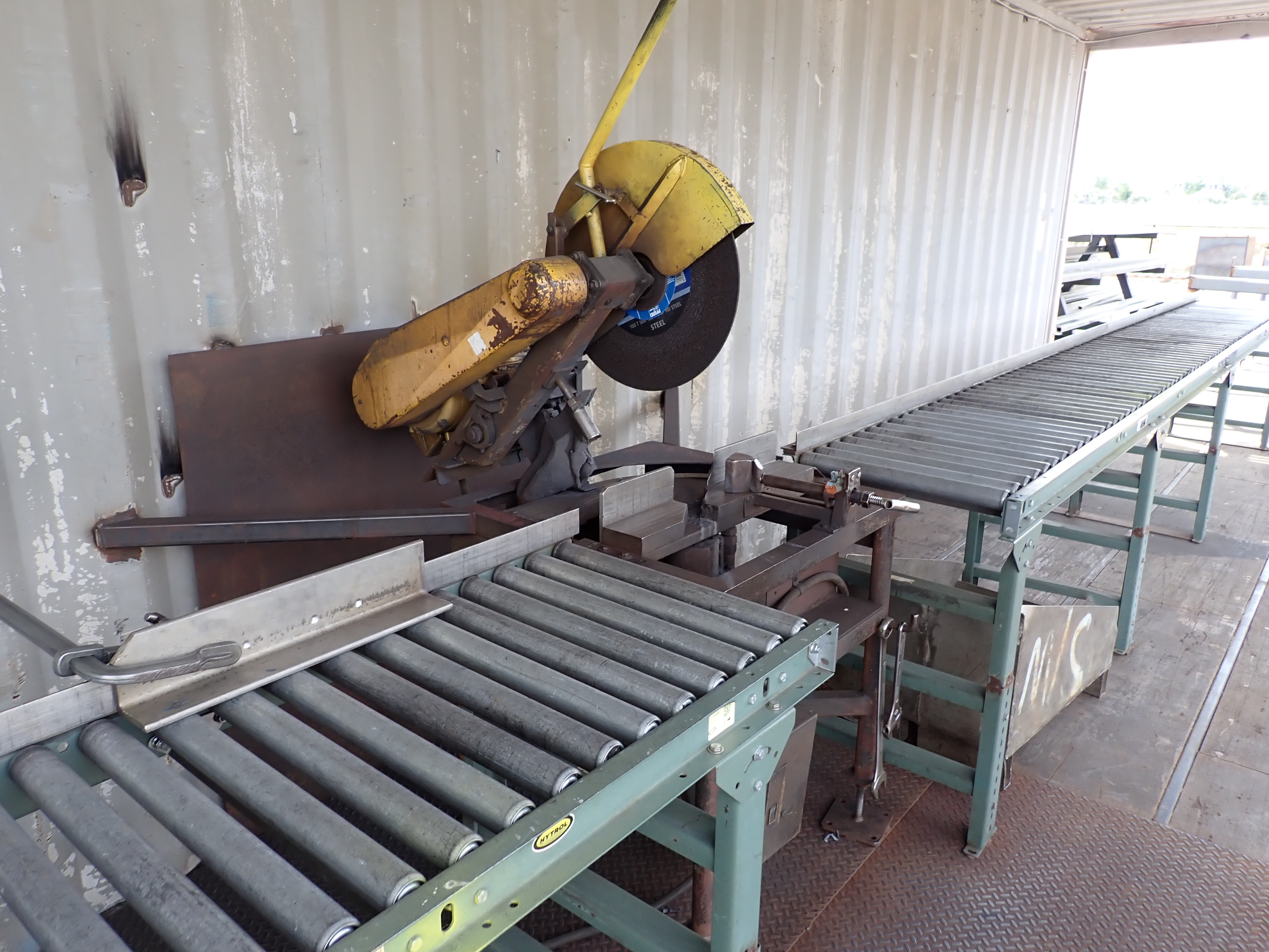 40' OPEN SIDE CONTAINER W/20" MITERING CHOP SAW, IN/OUT ROLL FEED CONVEYOR