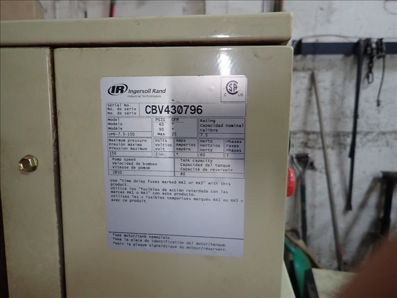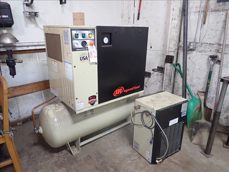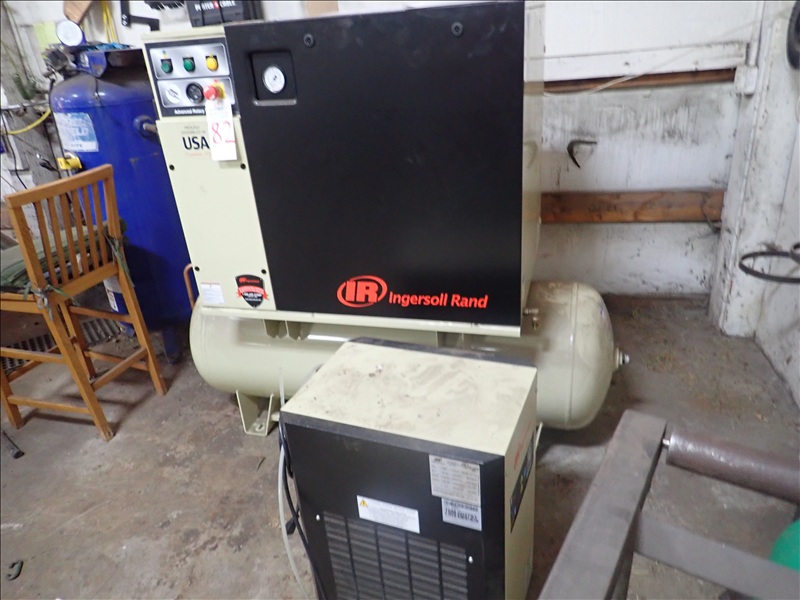 7.5 HORSE POWER, 80-GALLON ROTARY SCREW AIR COMPRESSOR, 230V, 3 PHASE W/INGERSOLL RAND D42IT REFRIGERATED AIR DRYER & 60-GAL VERTICAL RECEIVER TANK