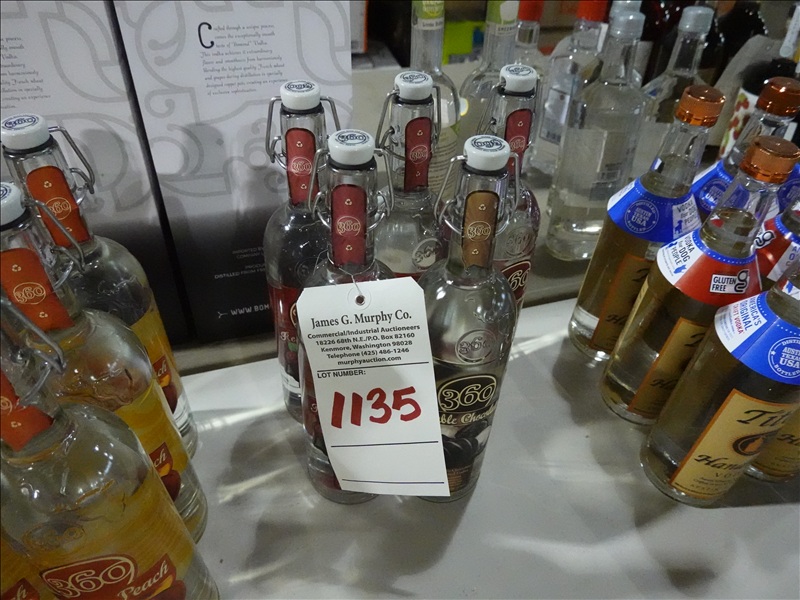 LOT, (1) 750 ML BOTTLE OF 360 DOUBLE CHOCOLATE VODKA & (4) 750 ML BOTTLES OF 360 RED RASPBERRY VODKA