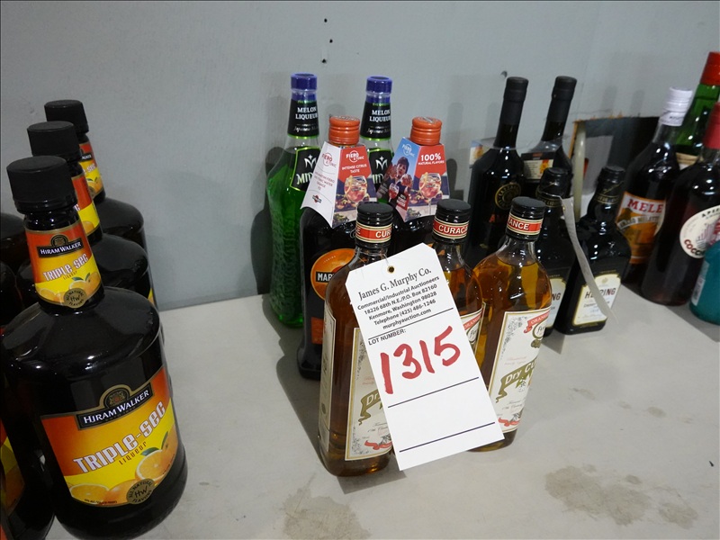 LOT, (3) 700 ML BOTTLES OF FERRAND DRY CURACAO, (2) 750 ML BOTTLES OF MARTINI & ROSSI FIERO & (2) 1L BOTTLES OF MIDORI MELON LIQUEUR