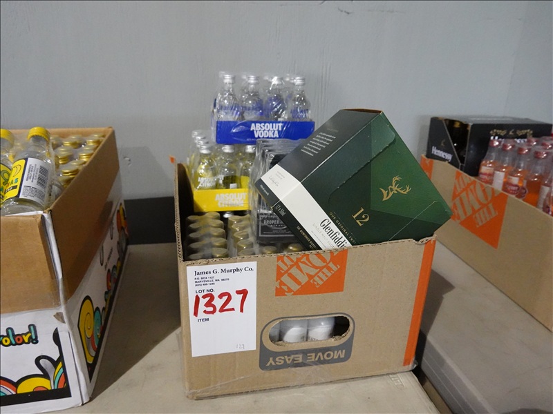 LOT, (36) 50 ML BOTTLES OF ABSOLUT VODKA, (24) 50 ML BOTTLES OF ABSOLUT CITRON, (50) 50 ML BOTTLES OF RUM CHATA, (12) 50 ML BOTTLES OF PROPER TWELVE IRISH WHISKEY & (5) 50 ML BOTTLES OF GLENFIDDICH SCOTCH