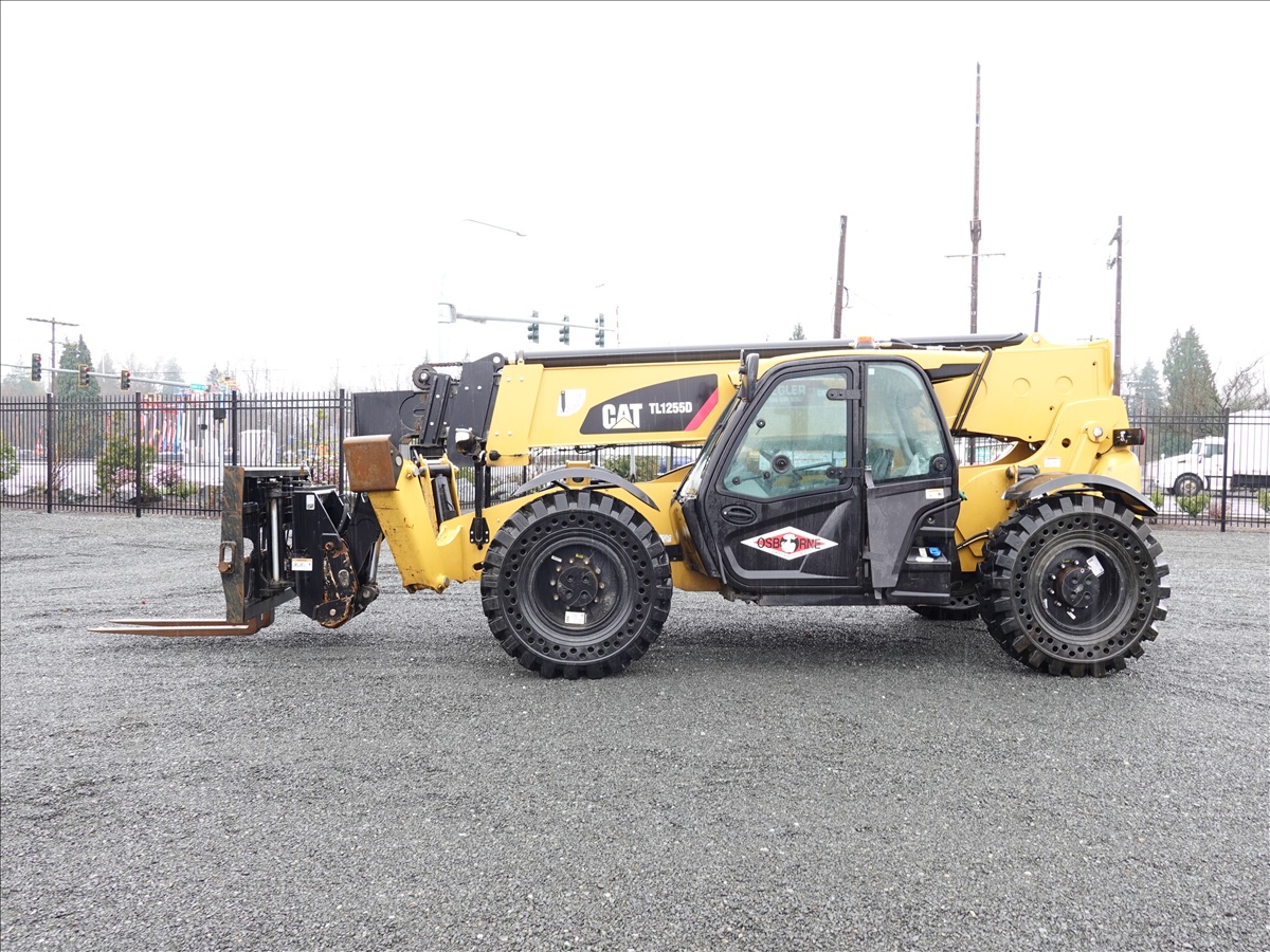4X4X4 12,000 LB TELESCOPIC FORKLIFT, 54.6' LIFT HEIGHT, 4-SECTION BOOM, OUTRIGGERS, SWIVEL CARRIAGE, AUX HYD, 134 HP C4.4, A/C CAB, REAR CAMERA, SOLID AIR 14.00X24