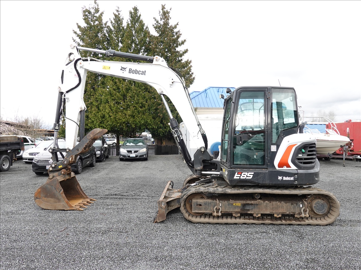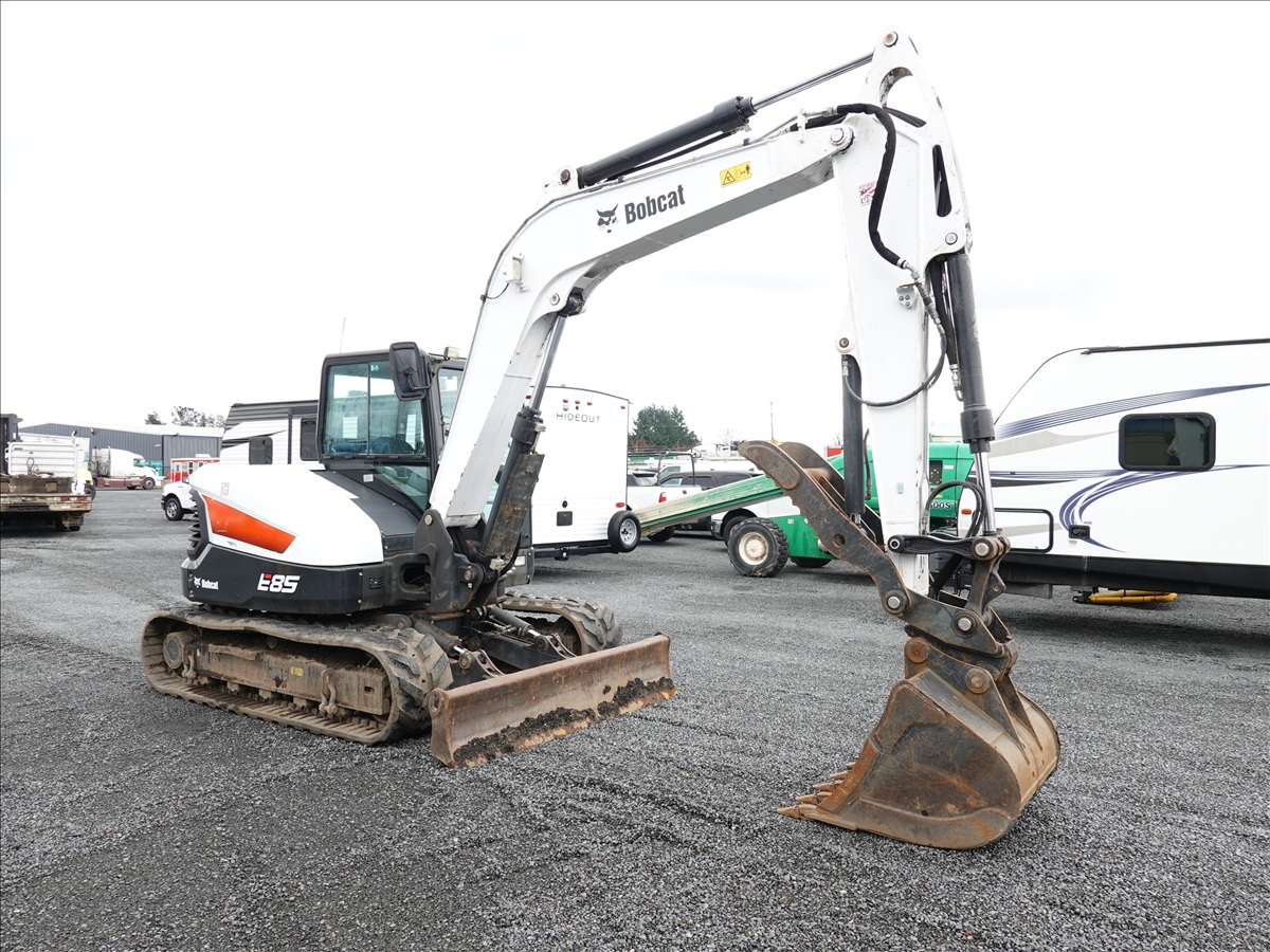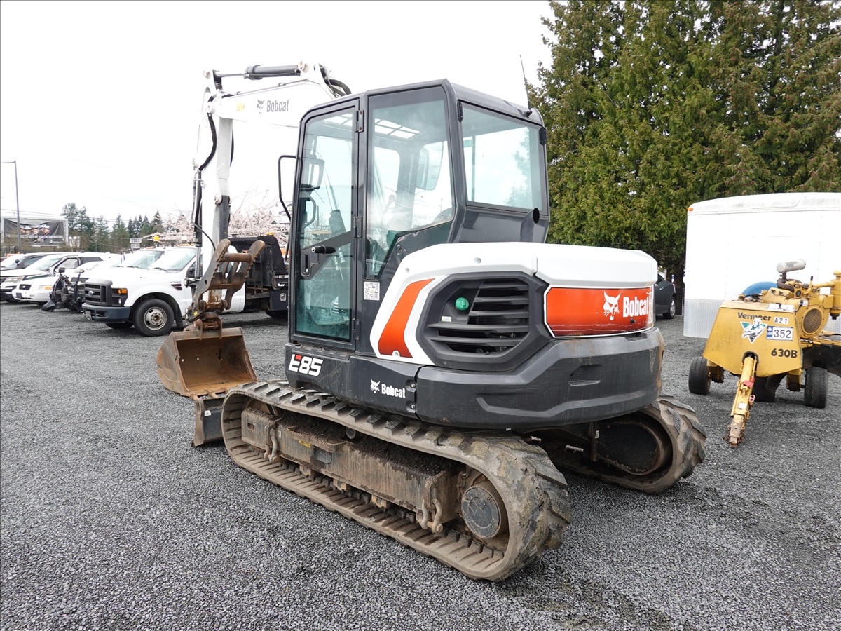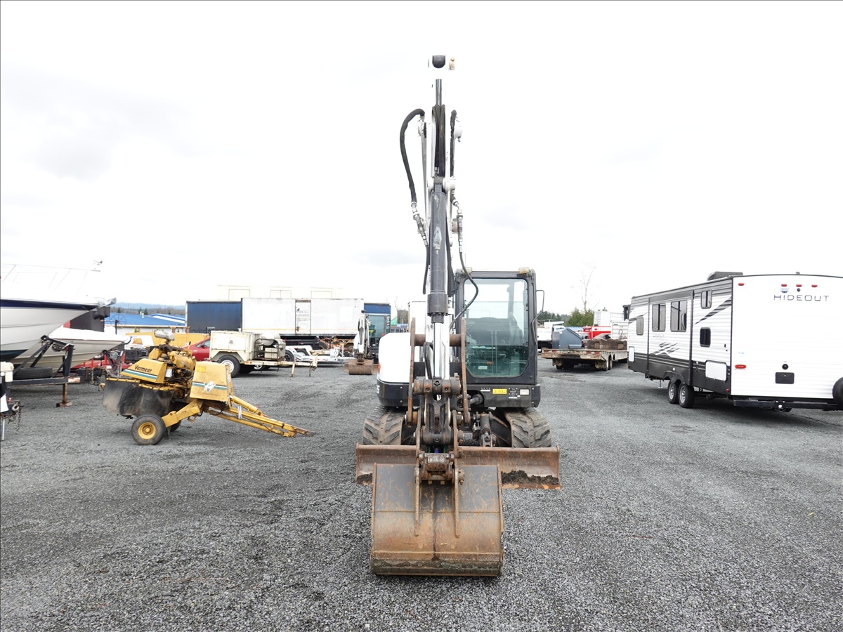 HYDRAULIC EXCAVATOR, 65.9 HP DOOSAN D24NAP, SWING BOOM, QC 34" BUCKET, GEITH PIN GRABBER, THUMB, AUX HYD, BLADE, RUBBER TRACKS, A/C CAB
