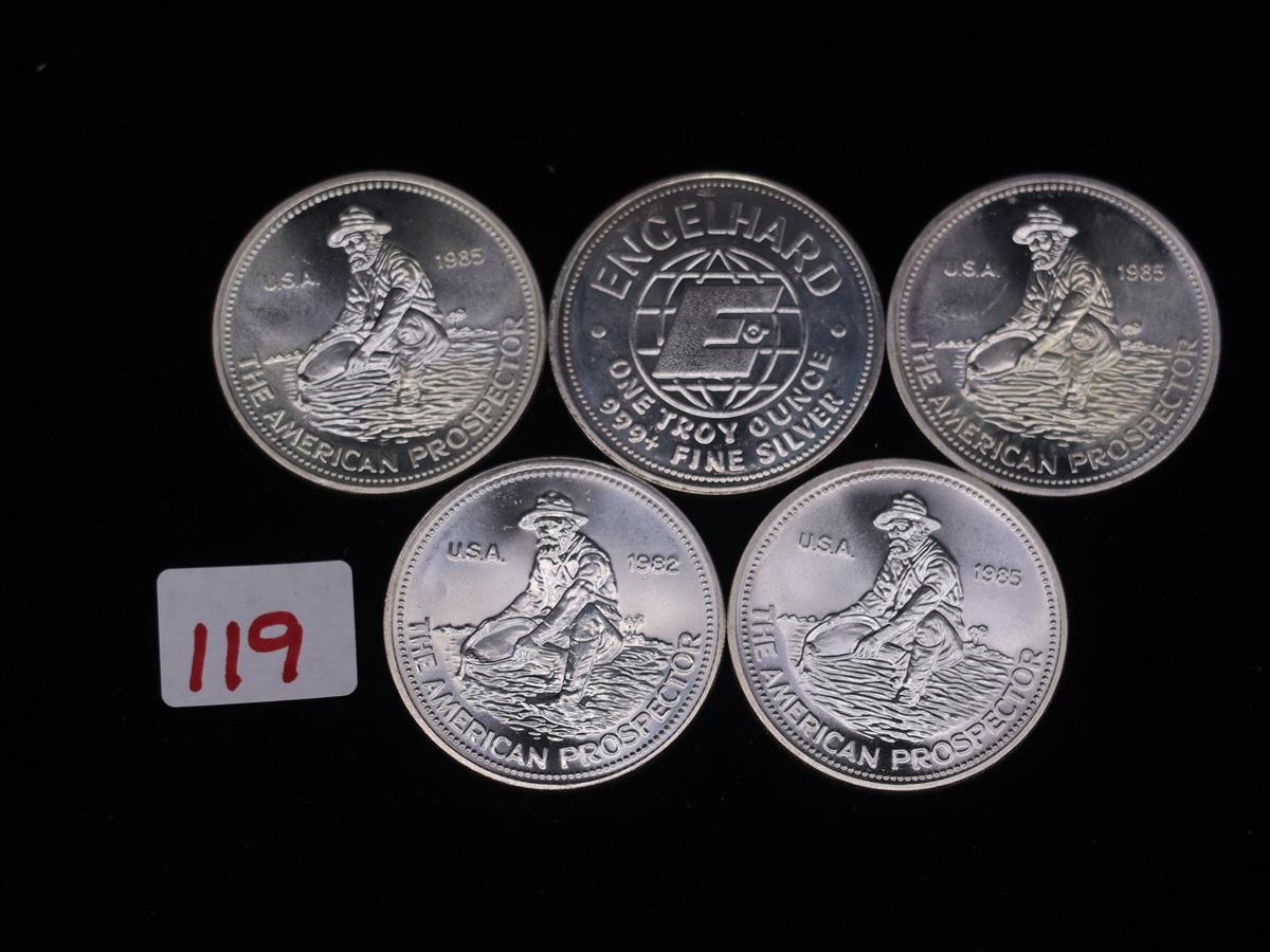 LOT, (3) ENGELHARD 1 OZ SILVER ROUNDS (5 TROY OZ SILVER) IN THIS BAG