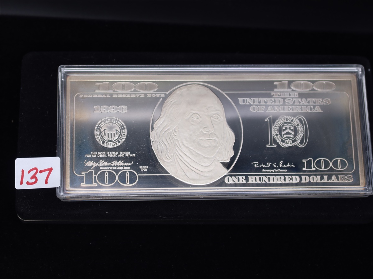1996 $100 BILL SILVER BAR (4 TROY OZ SILVER) IN THIS BAG