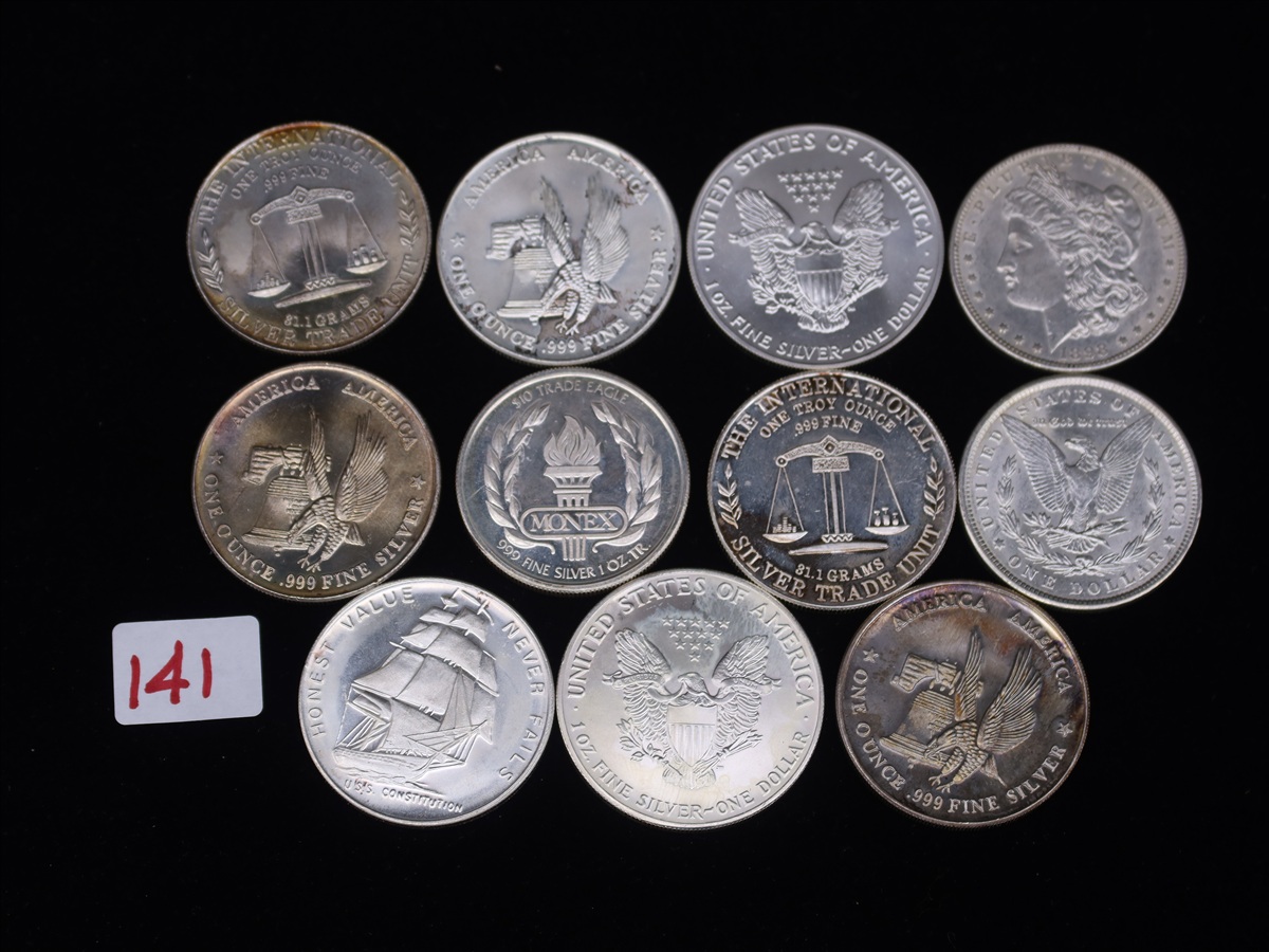 LOT, 1991, 1992 SILVER EAGLE, 1898 MORGAN & (8) SILVER ROUNDS (10 TROY OZ SILVER) IN THIS BAG