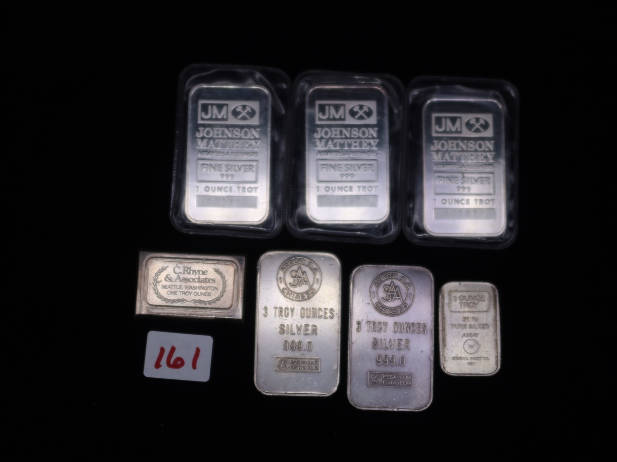 LOT, (2) 3 OZ & (5) 1 OZ SILVER BARS (11 TROY ...