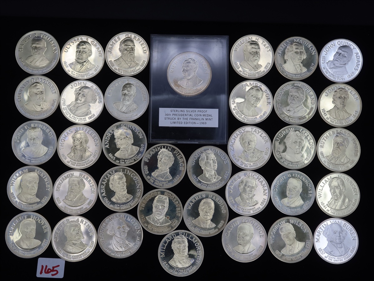 LOT, (36) STERLING SILVER PRESIDENTIAL COIN MEDALS...