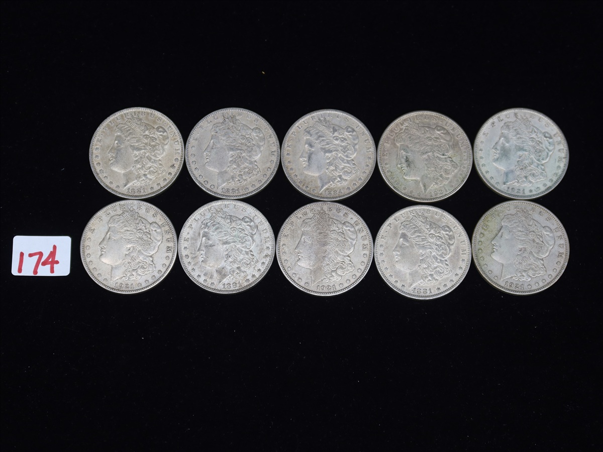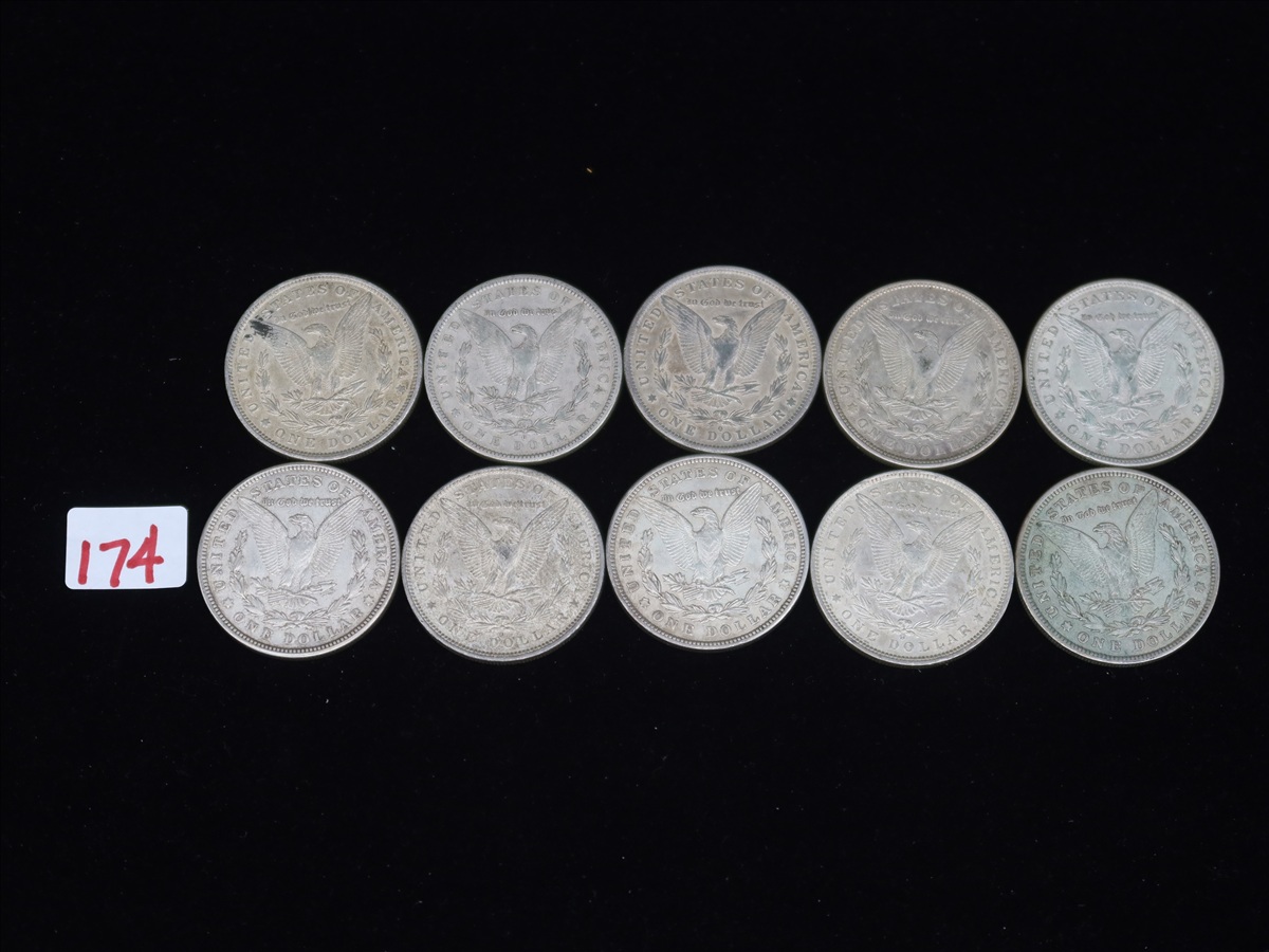 LOT, (10) MORGAN SILVER DOLLARS TO INCLUDE: (4) 18...