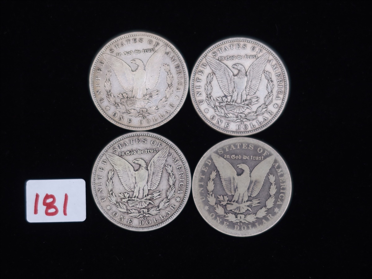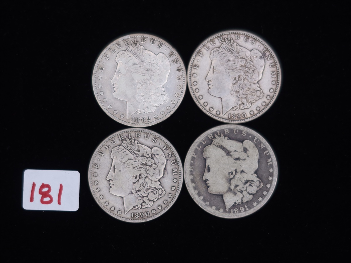 LOT, (4) ASSORTED MORGAN SILVER DOLLARS TO INCLUDE: (1) 1882-CC, (2) 1890-CC & (1) 1891-CC IN THIS BAG