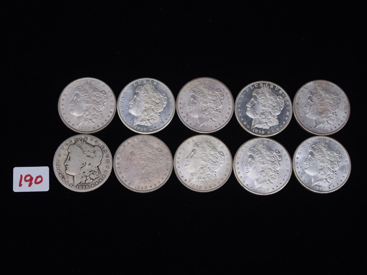LOT, (10) ASSORTED MORGAN SILVER DOLLARS TO INCLUDE: (2) 1898-P & (8) 1898-O IN THIS BAG