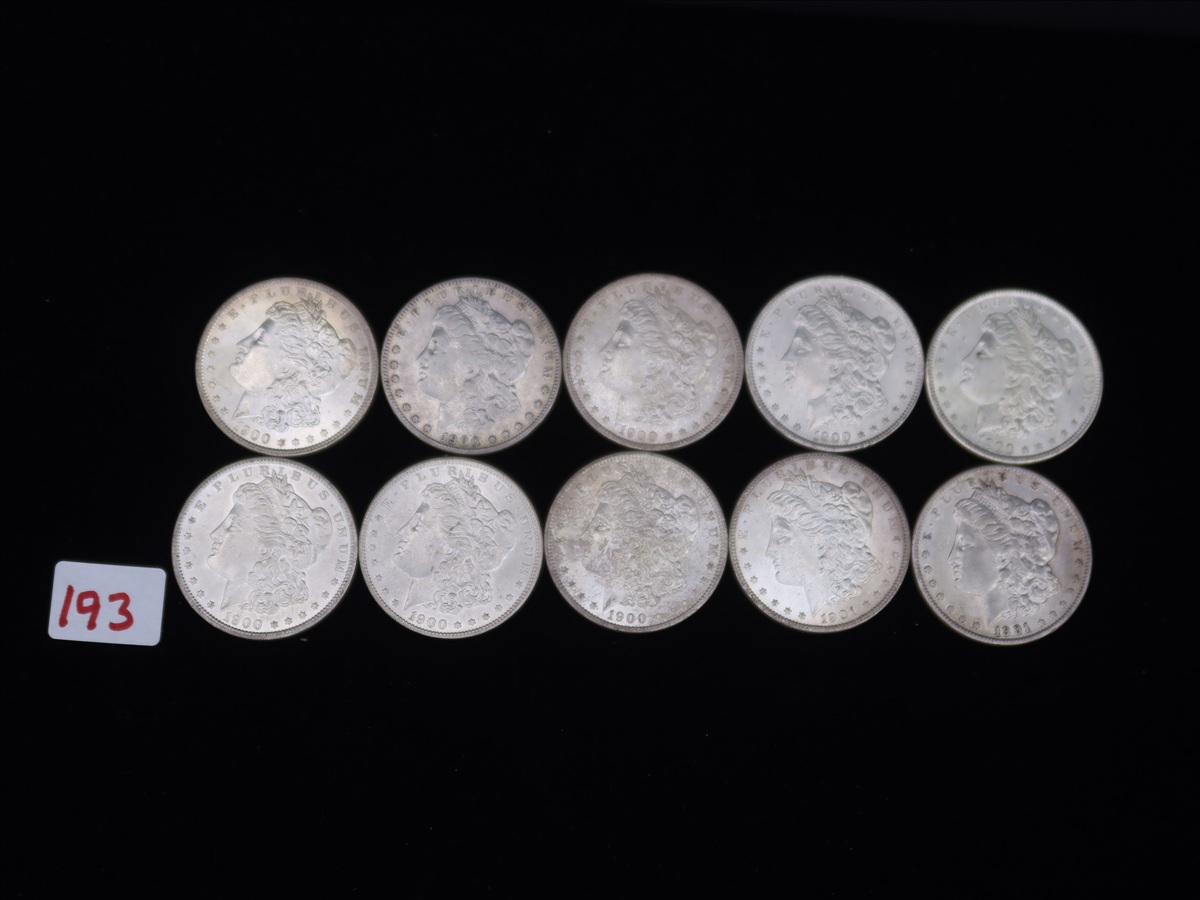 LOT, (10) ASSORTED MORGAN SILVER DOLLARS TO INCLUDE: (1) 1900-P, (6) 1900-O, (1) 1900-S, (1) 1901-P & (1) 1901-O IN THIS BAG