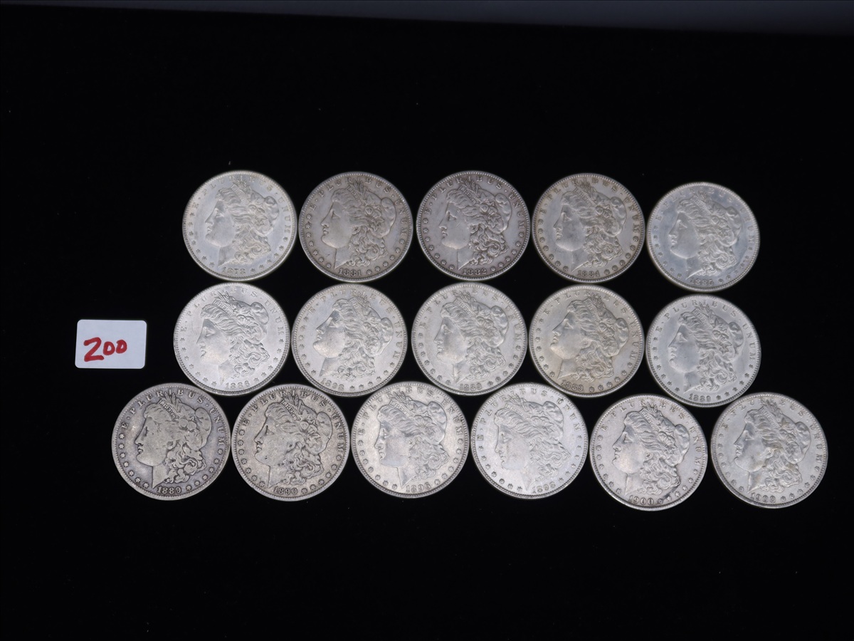 LOT, (16) ASSORTED MORGAN SILVER DOLLARS TO INCLUDE: (1) 1878-S, (1) 1881-P, (1) 1882-P, (1) 1884-P, (1) 1885-P, (1) 1886-P, (3) 1889-P, (1) 1889-O, (1) 1890-O, (1) 1896-P, (2) 1898-P & (2) 1900-P IN THIS BAG