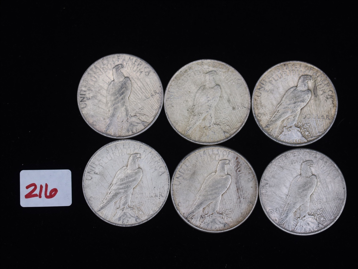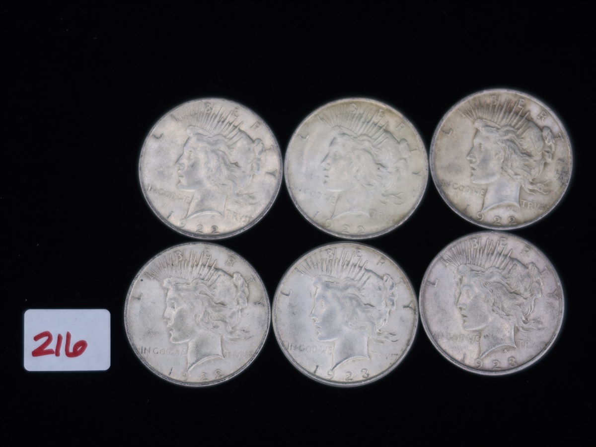 LOT, (6) PEACE SILVER DOLLARS TO INCLUDE: (4) 1922...