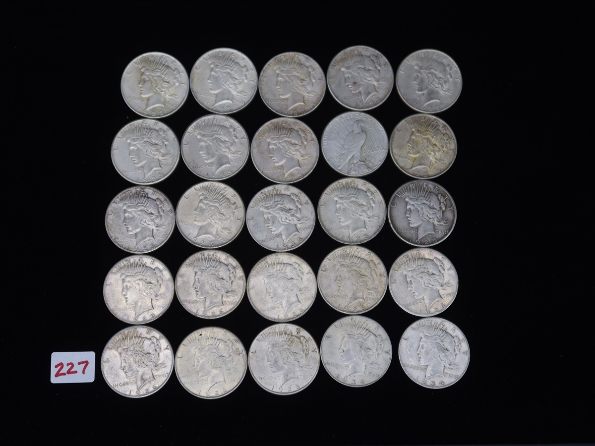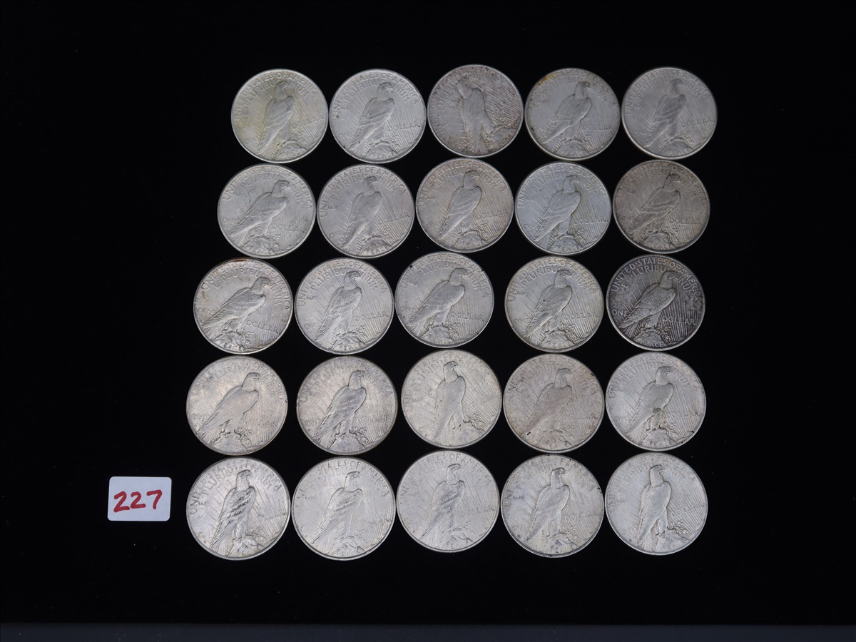 LOT, (25) PEACE SILVER DOLLARS TO INCLUDE: (3) 1923-P, (6) 1923-S, (2) 1923-D, (2) 1925-P, (2) 1925-S, (6) 1926-S, (1) 1928-S, (1) 1934-S, (1) 1934-D & (1) 1935-S IN THIS BAG