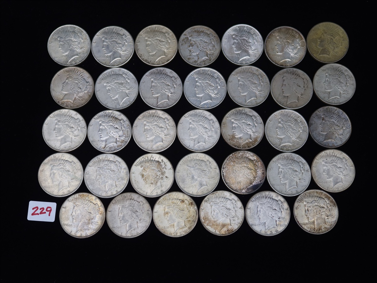 LOT, (34) PEACE SILVER DOLLARS TO INCLUDE: (6) 192...
