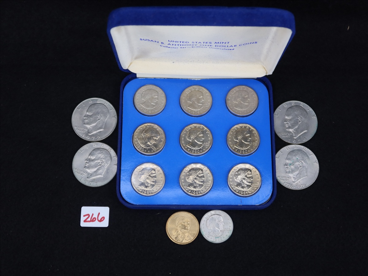 LOT, (9) $1 SUSAN B SET UNCIRCULATED DOLLARS IN A CSE, (4) $1 IKES, (1) $1 SUSAN B & (1) $1 SACAGAWEA IN THIS BAG