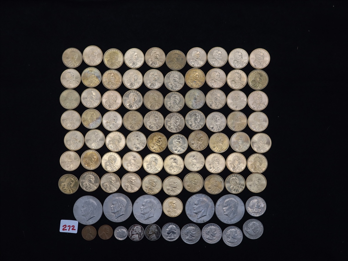 APPROX (71) $1 SACAGAWEA'S, (5) $1 IKES, (5) $1 SUSAN B'S, (1) QUARTER, (1) DIME, (2) NICKELS & (2) CENTS IN THIS BAG