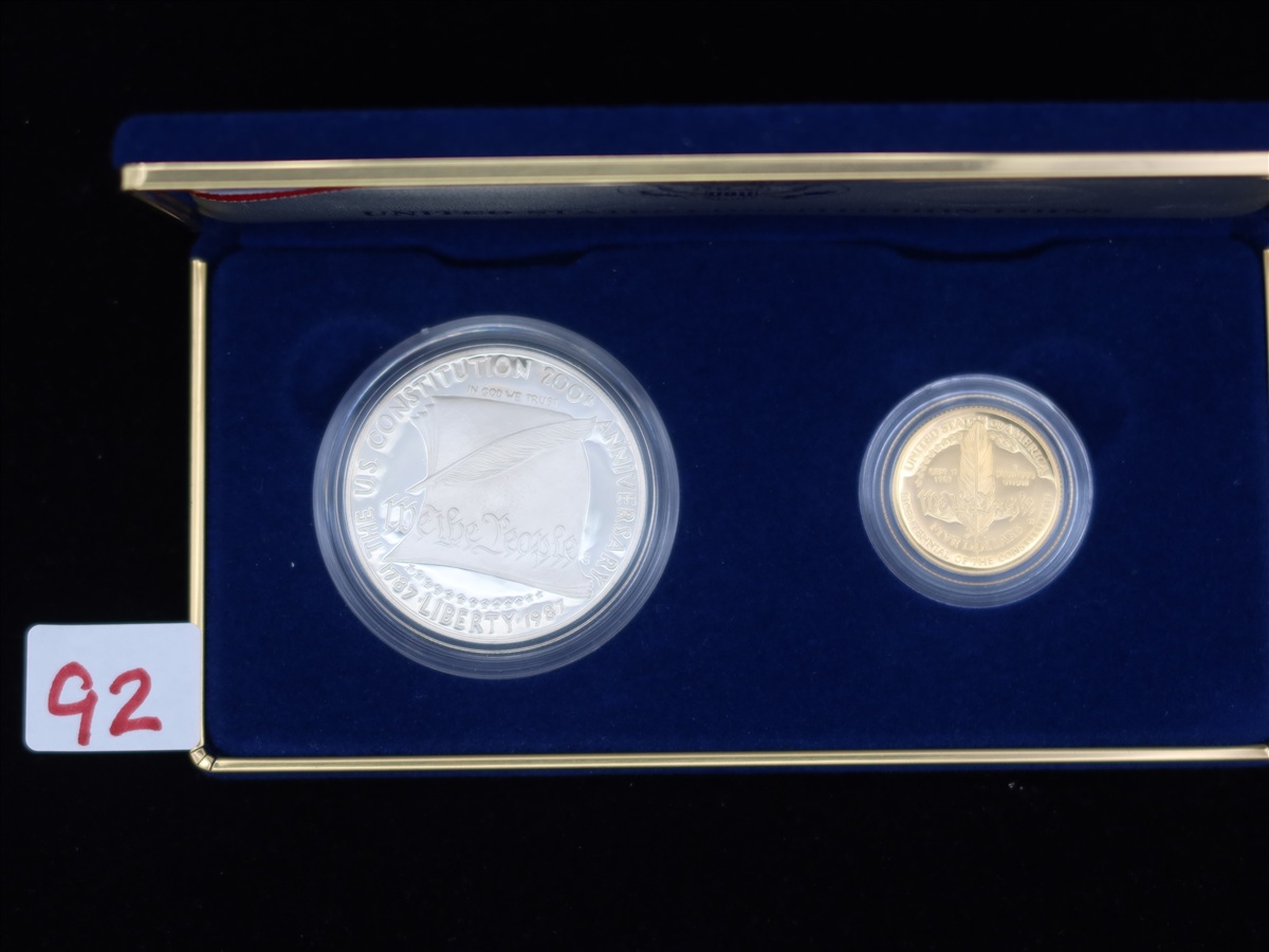 1987 UNITED STATES CONSTITUTION COIN SET TO INCLUDE: (1) $5 GOLD COIN & (1) SILVER DOLLAR IN THIS BAG