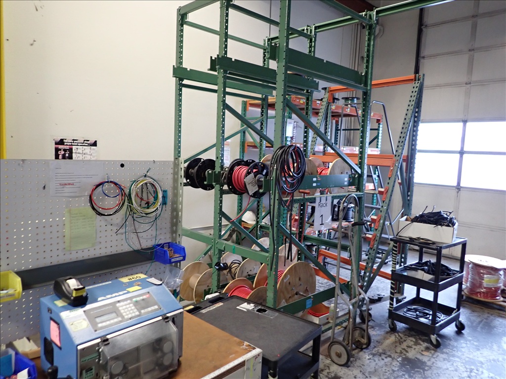 WIRE SPOOL RACK W/ASSORTED SPOOLS