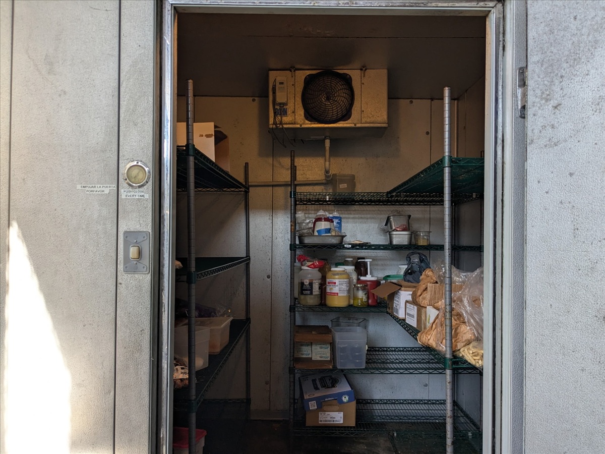 APPROX. 7' DEEP X 7'W X 94" H WALK-IN COOLER W/BOHN SINGLE FAN CONDENSING UNIT, COMPRESSOR ON BOX ROOF & NO FLOOR