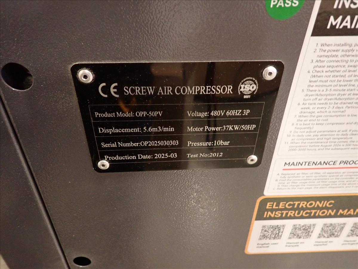 50 HP ROTARY SCREW AIR COMPRESSOR W/TR06 AIR DRYER, TOUCH SCREEN CONTROLS