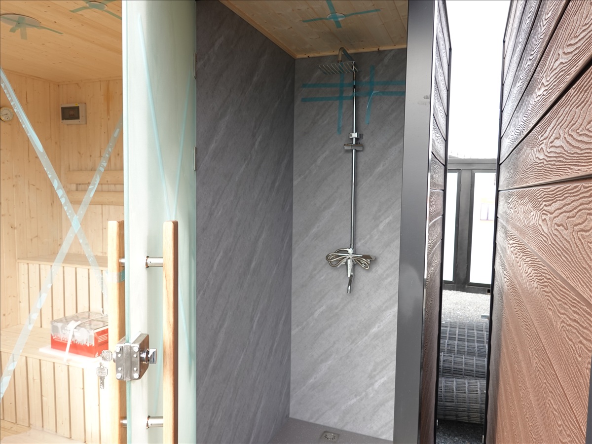 EQUIPPRO SR10A 7.5'L X 10'W X 8'H CONTAINER SAUNA ROOM W/SHOWER ROOM & FORK POCKETS, 240V