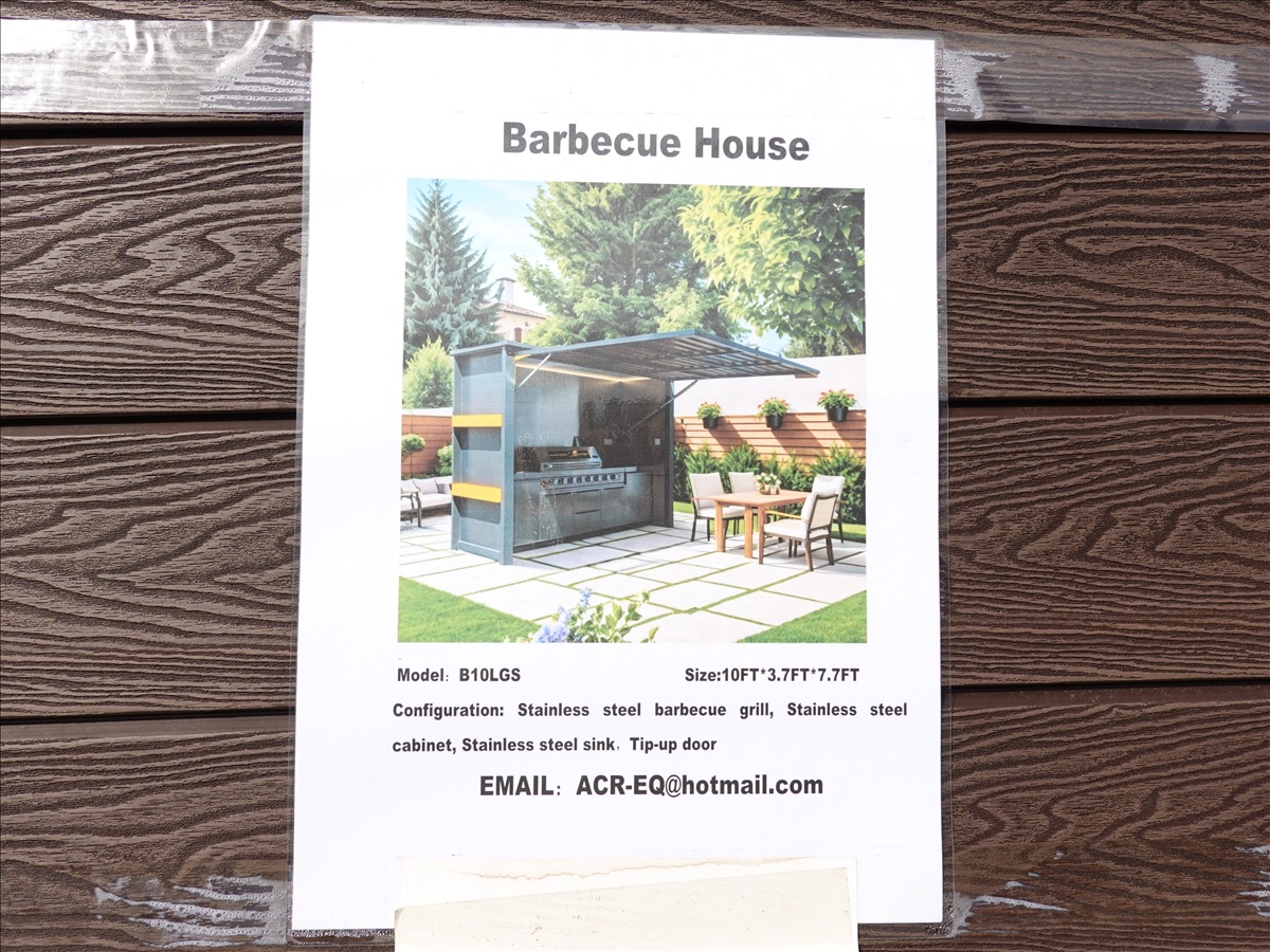 EQUIPPRO B10LGS 3.5L X 9.5'W X 7.5'H BARBEQUE HOUSE W/SS APPLIANCES, 110V (UNUSED, MEASUREMENTS ARE APPROX