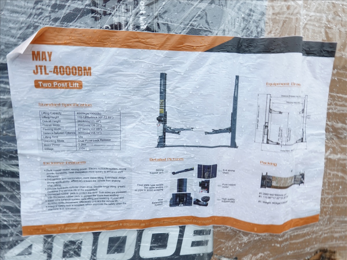 MAY JTL-4000BM 10,000 LB 2-POST LIFT, 110V
