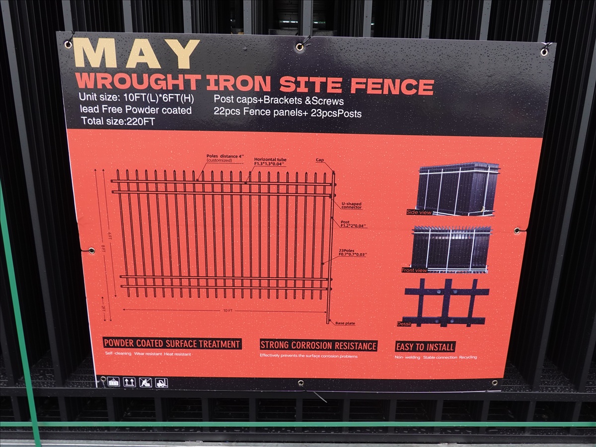 APPROX 10' X 6' WROUGHT IRON SITE FENCE (UNUSED, (22) FENCE PANELS & (23) POSTS)