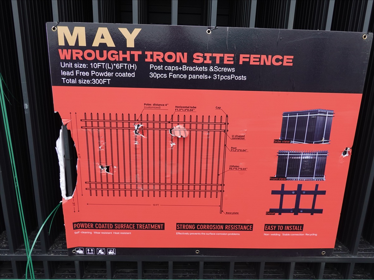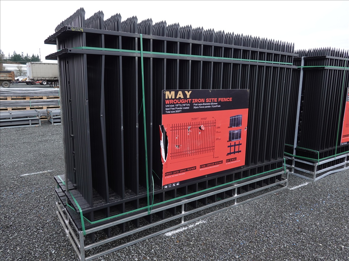 APPROX 10' X 6' WROUGHT IRON SITE FENCE (UNUSED, (22) FENCE PANELS & (23) POSTS)
